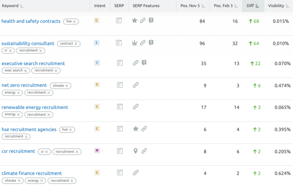Acre UK’s keywords have really improved, most notably with “corporate social responsibility recruiters” rising 6 positions up to ranking 1st on Google!