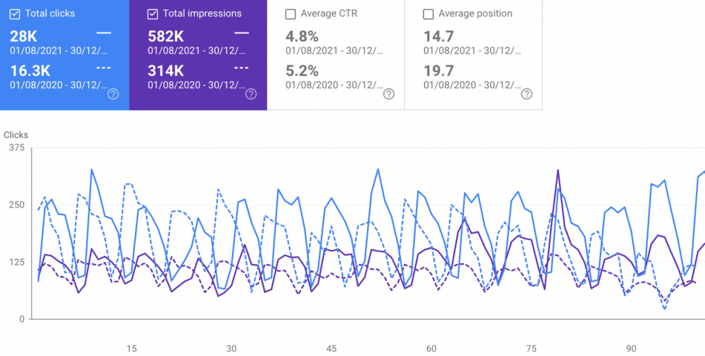 Total clickson Acre’s UK site increased from 16.3K to 28K, a 72% increase! Total impressions on Acre’s UK site increased from a 314K to 582K, which is a massive increase of 85%!