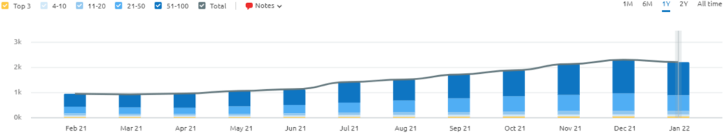 - The total number of UK keywords being ranked for has more than doubled over the last year, increasing by 1,260 from 954 to 2,214!