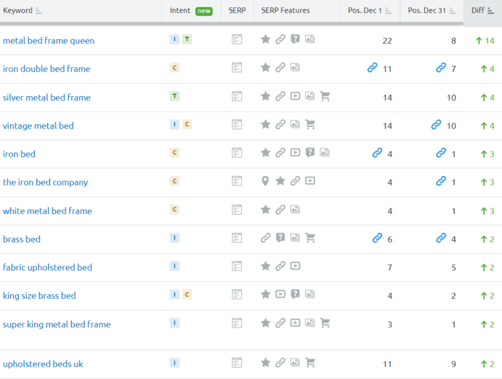 • Some keywords increased into the first place ranking e.g. “iron bed”!
